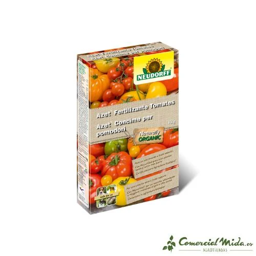 El abono granulado ecológico Azet Neudorff para Tomates tiene origen animal y vegetal por lo que resulta un fertilizante orgánico ideal para asegurar el crecimiento enérgico así como dar una cosecha provechosa y abundante. Contiene la dosis de potasio necesaria para conseguir que los tomates sean ricos en sabor y alcancen la maduración ideal. Este abono NPK 7-3-10 tiene efecto inmediato y duradero hasta 3 meses.