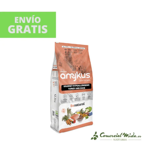 Pienso hipoalergénico sin cereales para perros adultos Amykus Gourmet Hypoallergenic Grain Free Turkey & Duck.