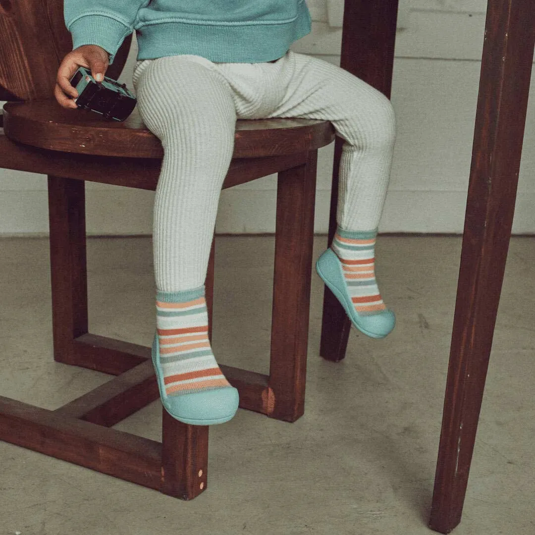 Los Attipas también ofrecen un agarre antideslizante, lo que permite a los niños caminar con confianza sobre baldosas, tablones y otras superficies resbaladizas. Los zapatos Attipas se fabrican en Corea del Sur con algodón natural y caucho y se basan en 7 años de investigación en la Universidad de Seúl.