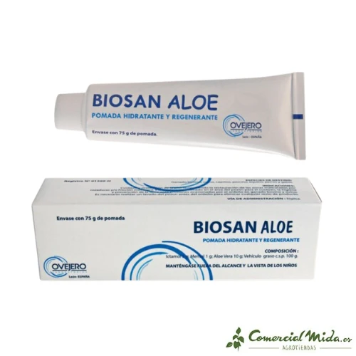 Biosan aloe es una pomada regenerante que está especialmente pensada para regenerar las ubres de diferentes animales (perros, gatos y ganado porcino, ovino, caprino y equino) y además protegerlas frente a erosiones producidas por el ordeño.