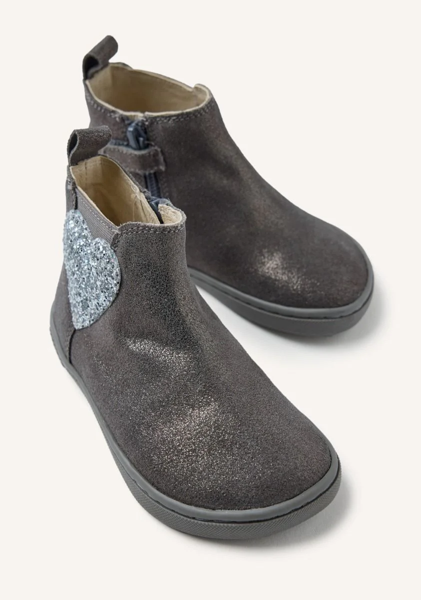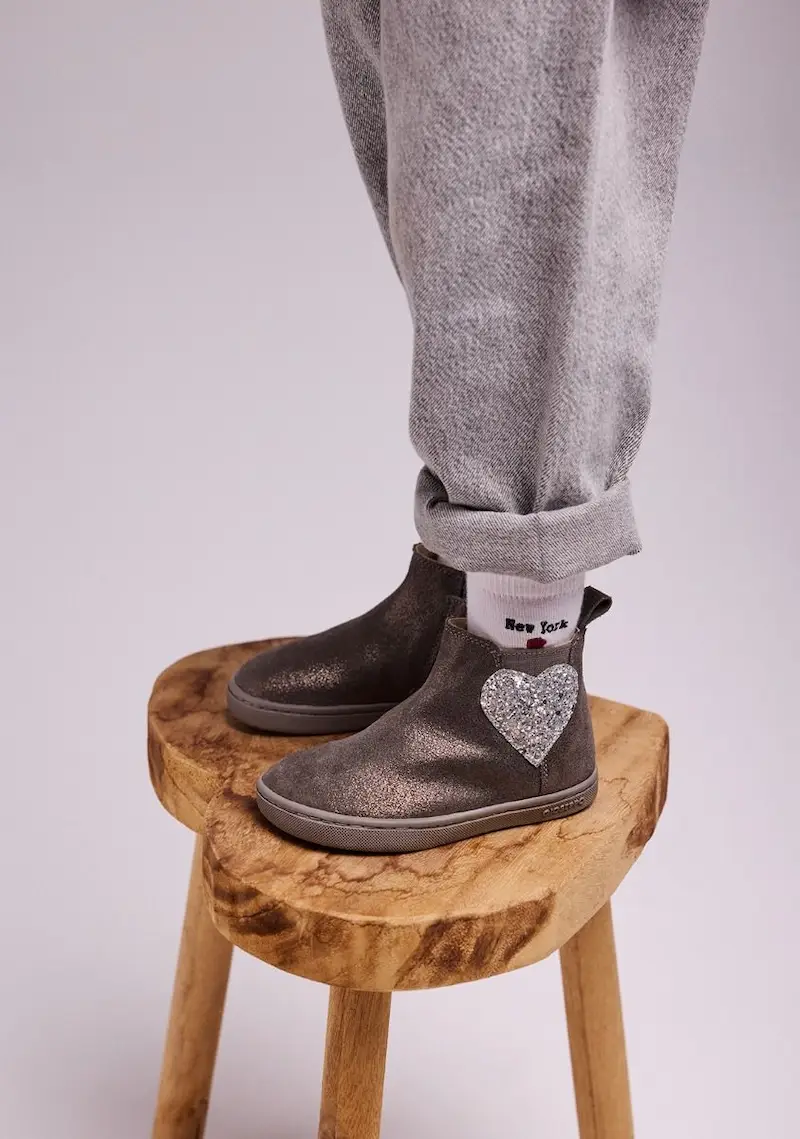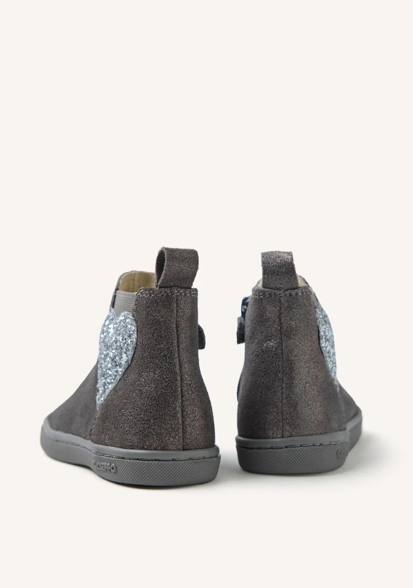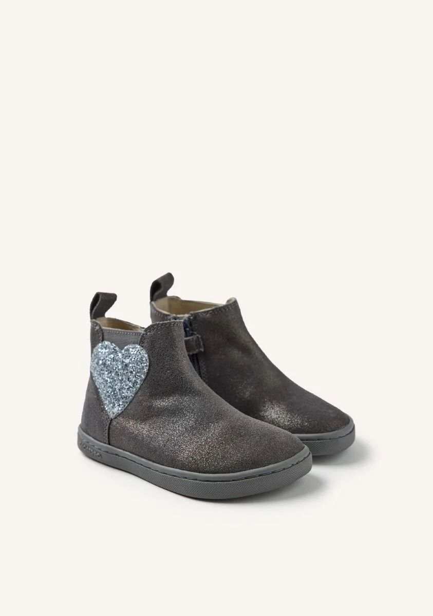 Botines barefoot infantiles del fabricante español Gioseppo, en esta ocasión traemos el modelo COKATO 76223 diseñadas para ofrecer máxima comodidad y un estilo minimalista. combinan un cuidado diseño infantil con la libertad y protección que exigen los pies en crecimiento. Fabricados en piel serraje de gran suavidad con un sutil brillo además de una pieza decorativa en forma de corazón en el lateral exterior, junto a una práctica cremallera interior que facilita el calce. Disponibles entre las tallas 26 y 35.