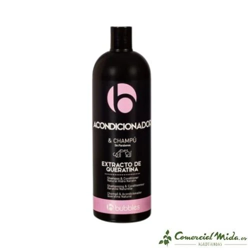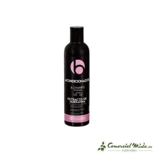 Este champú acondicionador también proporciona una acción reparadora capilar gracias a su extracto de queratina, lo cual hará que tu mascota salga del baño con el pelo brillante y sedoso. Este champú también es válido para gatos.