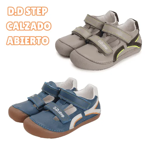Calzado respetuoso abierto de piel de D.D. Step fresquito pero a la vez protege todo el pie, perfectos para la temporada de primavera y verano. Tallas desde la 25 hasta 30 y disponibles en las siguientes variaciones de color: