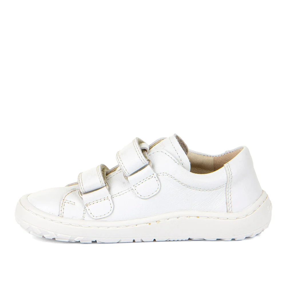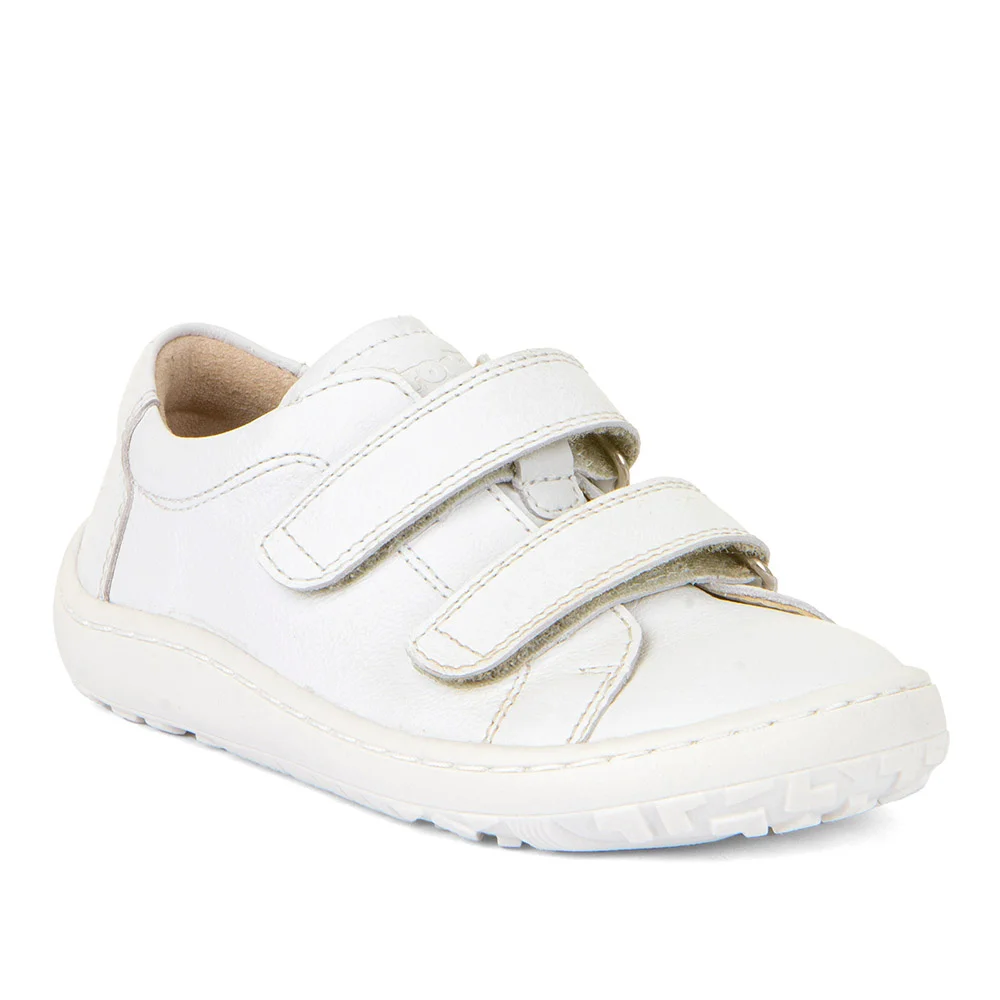 Este modelo de calzado respetuoso colegial para niños está fabricado en piel lisa de color BLANCO y cuenta con un cierre de DOS VELCROS, lo cual facilita que los niños puedan adquirir gradualmente autonomía al calzarse por ellos mismos.