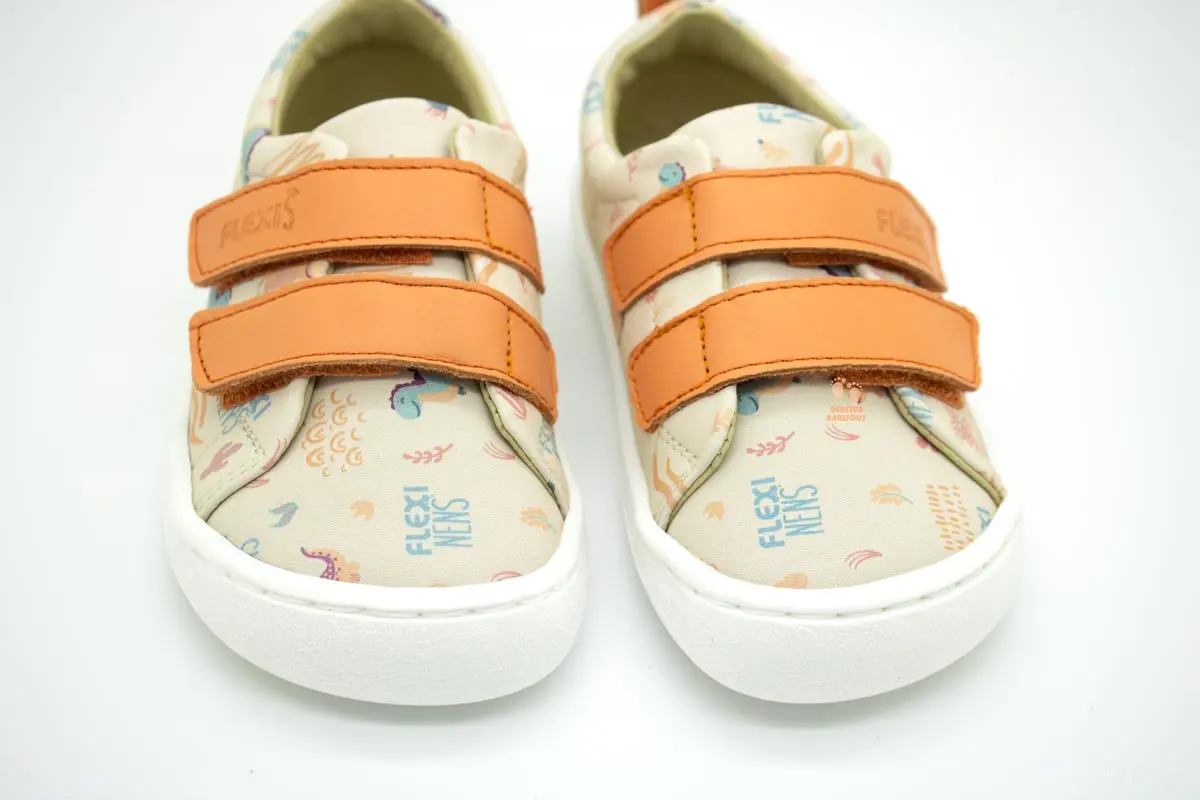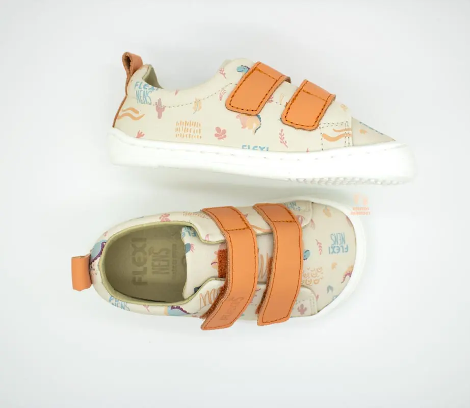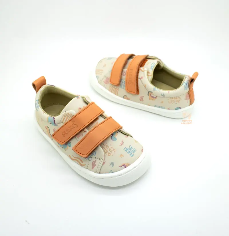 Para el cierre del calzado el fabricante Flexinens ha usado DOS VELCROS, estos velcros son fijos, una de las ventajas de usar cierres con velcros es la facilidad de colocación del calzado respetuoso por parte de los niños/as.