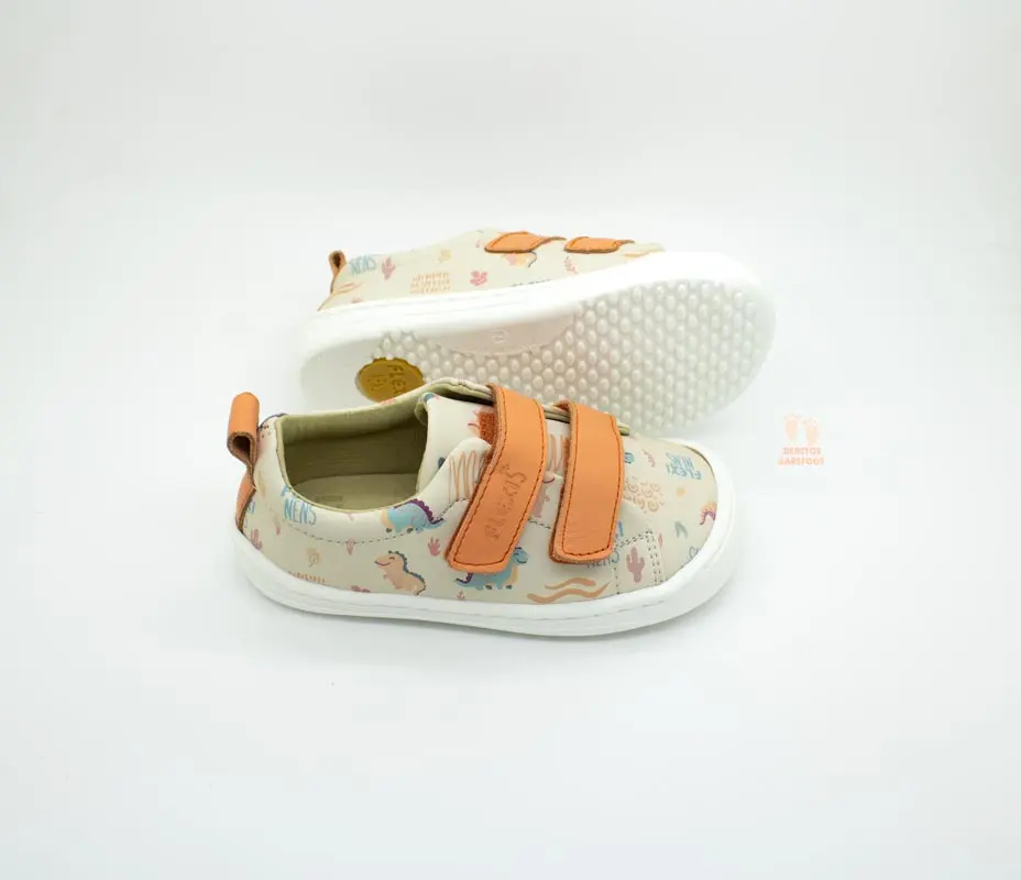 - DINOSAURIOS (base en color arena con diseño de dinosaurios + 2 velcros en color NARANJA).