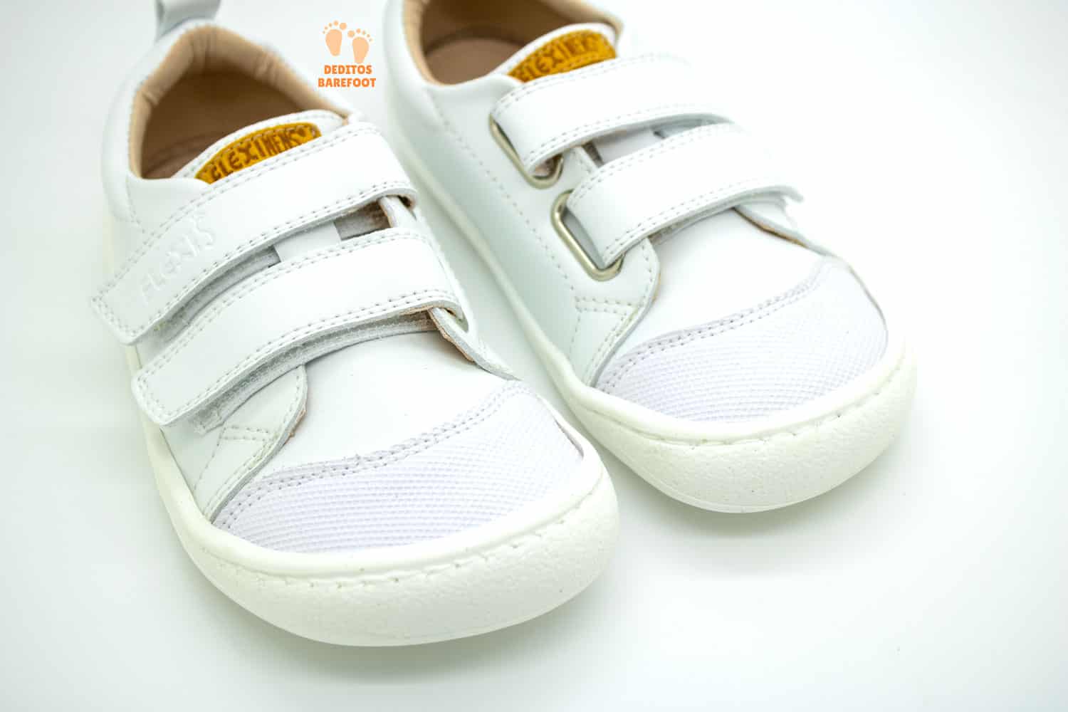Para el cierre del zapato el fabricante ha usado DOS CIERRES DE VELCRO también en color blanco y en piel, una de las ventajas de usar cierres con velcros es la facilidad de colocación del calzado respetuoso por parte de los niños/as.