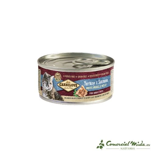 Este comida está formulada con ingredientes de gran calidad para que sea un alimento de lo más completo con un alto contenido en carne pero sin cereales ni patatas. Esta comida está hecho de pavo y salmón que ayudan a una digestión saludable además de mejorar la piel y el pelaje y hacer que estén más brillantes gracias a los ácidos grasos Omega 3 que tiene el salmón.