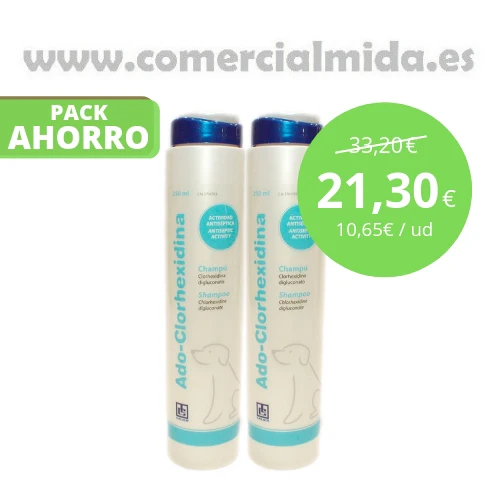 Cada 100 ml de champú Ado-Clorexidina está compuesto de 2 gr. de Clorexidina Digluconato (DCI)