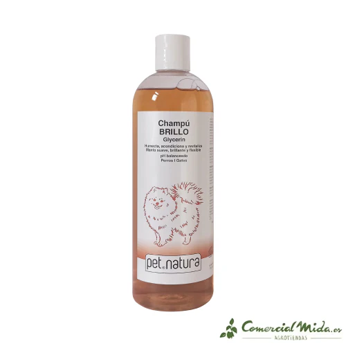 El champú brillo de PetNatura es una fórmula humectante que retiene la humedad del manto de los perros y gatos para acondicionar y cuidar la piel, realzando las características naturales de la piel y el pelaje de cada animal. Proporciona frescura, brillo y vitalidad. Elimina el rastro de suciedad y favorece la flexibilidad y elasticidad de la dermis. El manto de las mascotas se verá más suave y el pelo será más fácil de cepillar y manejar en cada pasada. El pH de este champú se adapta a la fisiología de cada animal, evitando alterar el equilibrio natural entre piel y pelaje. Este gel de lavado es ideal para aquellos pelos largos y medios castigados, débiles y sin fuerza.