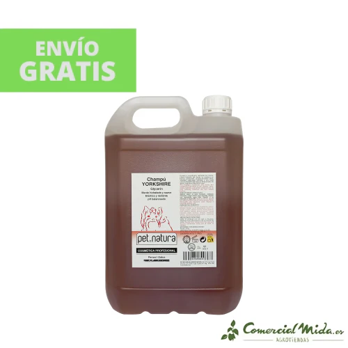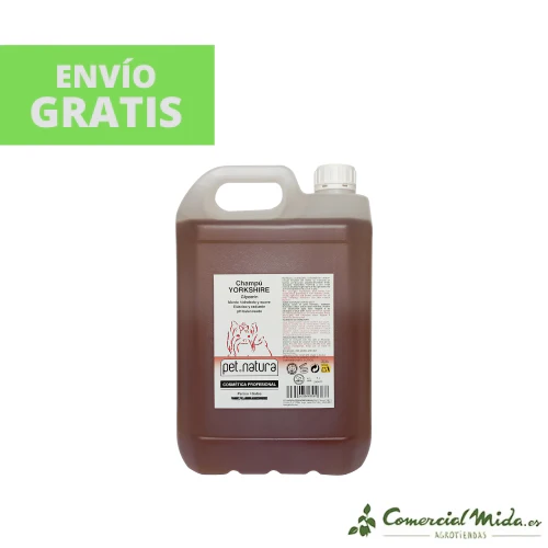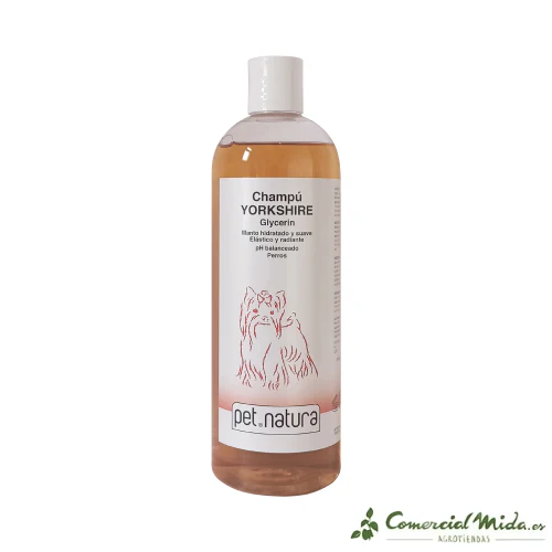 El champú de PetNatural especial para perros de raza Yorkshire está indicado para acondicionar y humectar el pelo y la piel de esta raza de mascotas. Gracias al aporte de sus ingredientes naturales, intensifica el brillo y realza las características naturales del manto de los perros. Proporciona limpieza, vitalidad, suavidad, elasticidad y prevención de la caída de la pelusa. Este tipo de champú contiene un pH neutro que se adapta a la fisiología del animal, evitando alterar el equilibrio natural de la piel y el manto. Esta fórmula es ideal para el cuidado y el buen mantenimiento de las características del pelo largo y liso.