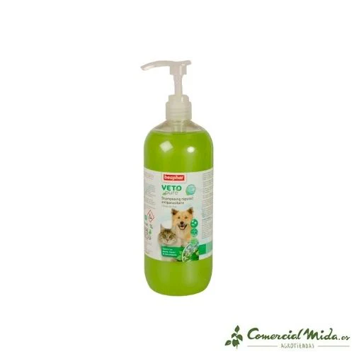 Champú para una correcta higiene y limpieza de perros y gatos. Cuenta con efecto repelente frente a pulgas, garrapatas y mosquitos.