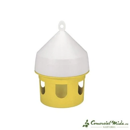 El comedero de plástico para palomas es de color amarillo, aportando mayor vitalidad al espacio. Su capacidad es de 5 L por lo que una vez lleno podrás despreocuparte de volver a administrar comida en unos días.