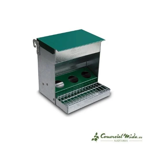 El comedero de Gómez y Crespo para periquitos es un accesorio ideal para combinar distintos tipos de mezcla para alimentar a esta especie de pájaros. El diseño es remachado y cuenta con una parte inferior extraíble que permite una fácil, óptima y rápida limpieza. Se puede colocar en el suelo o anclar en los barrotes del voladero para facilitar la administración de comida a las aves. Se trata de un comedero resistente en su exposición en el exterior y a los golpes. Mantiene las características específicas de cada tipo de alimento y evita que se humedezca, vierta o pierda por las rendijas o caigan en el piso. La parte superior cuenta con una tapa fácil de levantar y que mantendrá el contenido del cubículo en perfecto estado, evitando que se cuele suciedad o bichos.