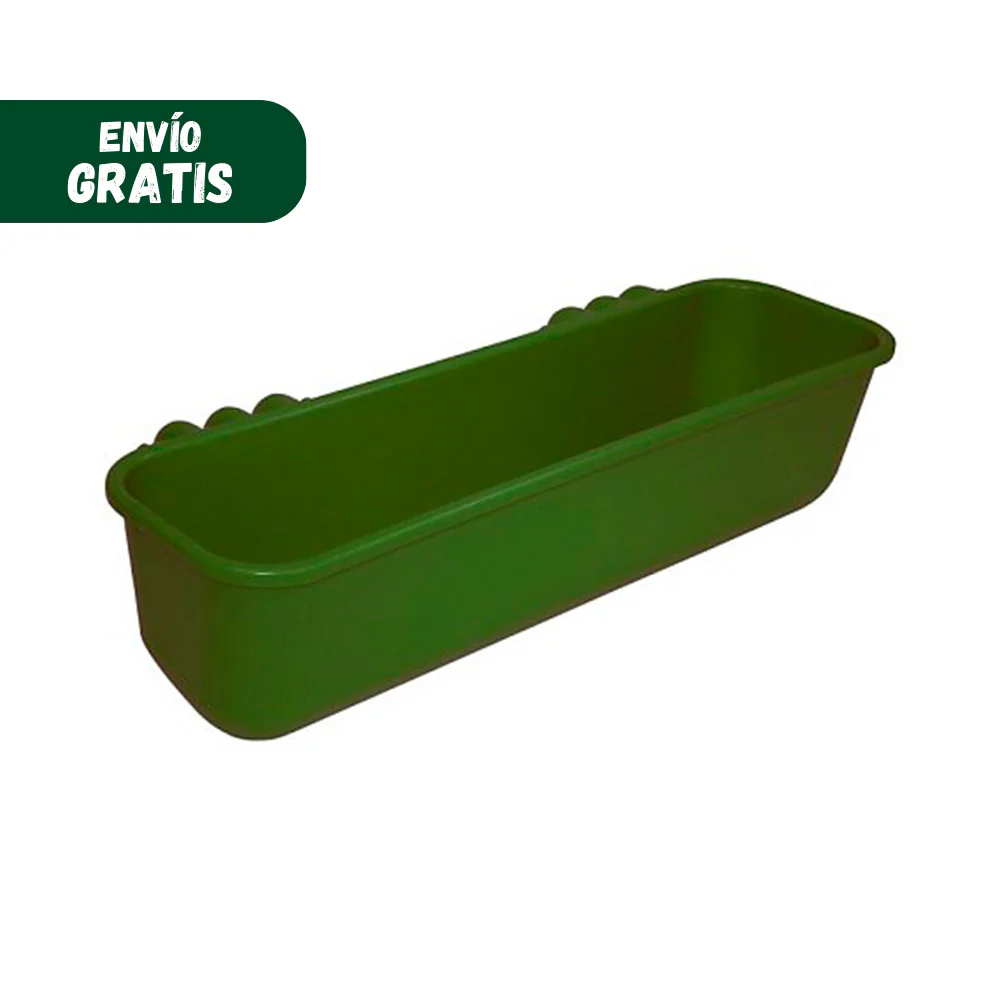 Este comedero con la capacidad de 42L puede ser anclado en una pared, su fabricación en plástico reforzado con fibra de vidrio le confiere resistencia a las inclemencias del tiempo.