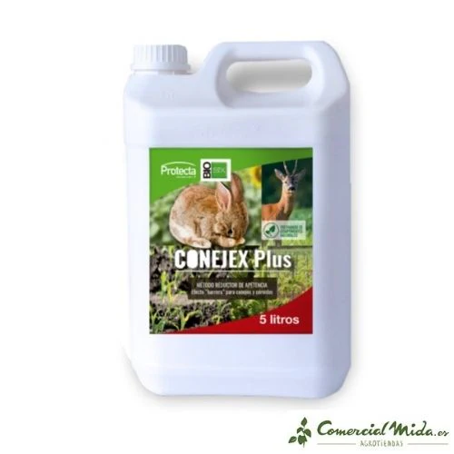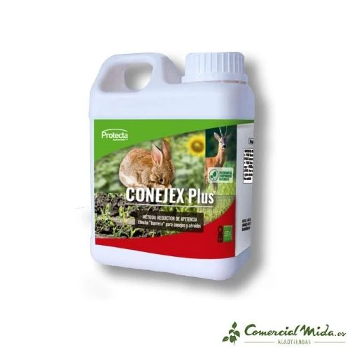El repelente CONEJEX PLUS es una solución líquida para aplicación en bulbos de plantas o cultivos que tiene como objetivo mantener alejados a los animales cinegéticos de las plantaciones, jardines o huertos tales como ciervos, corzos, cabras o conejos.