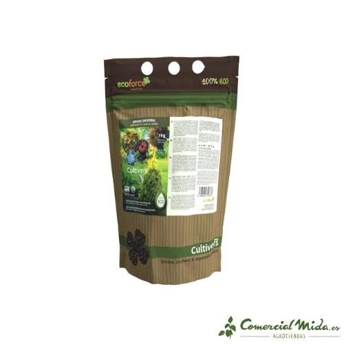 El abono ecológico universal de Cultivers es un tipo de fertilizante 100% orgánico diseñado para mejorar el crecimiento y mantenimiento de todo tipo de plantas de exterior e interior. Está formulado en pequeños gránulos en forma perlada de liberación lenta y controlada con un contenido equilibrado de elementos que potencian la nutrición de las plantas. Las pequeñas perlas son aptas para uso manual y mecanizado. Este abono estimula el crecimiento, refuerza y protege las raíces de enfermedades y plagas y mejora el sistema radicular de las plantas. Su fórmula contiene una alta cantidad de materia orgánica, nitrógeno, potasio, ácidos húmicos y fúlvicos. Se trata de un producto completamente ecológico, comprometido con la agricultura sostenible e inofensivo con los animales. Está libre de crear residuos y su calidad es máxima.