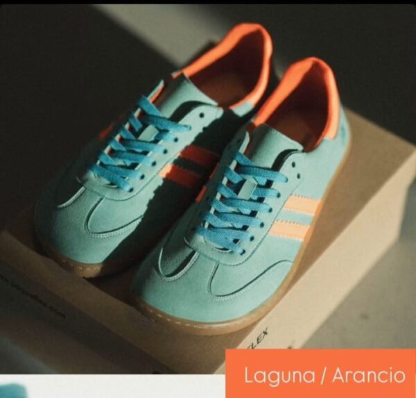 - LAGUNA/ARANCIO (base en color verde aguamarina + detalles naranjas). Ref: Laguna – Arancio