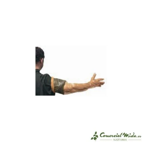 Guantes para realizar prácticas veterinarias en vacas, caballos y otro ganado. Con 90 cm de longitud, de color naranja.