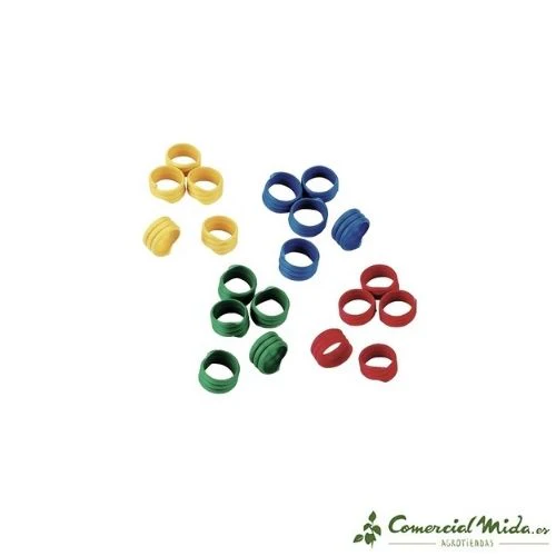 - Anilla de Plástico para Identificación de Aves. Colores Variados, Ø 12 mm. Envase 100 uds. EAN 4018653723517.