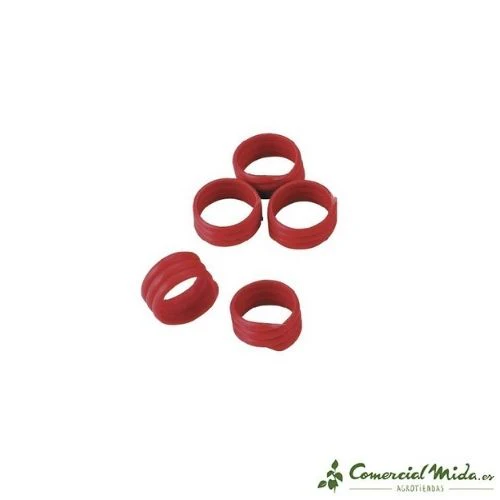 - Anilla de Espiral para Identificación de Aves. Rojo, Ø 16 mm. Blister 20 uds. EAN 4018653721018.
