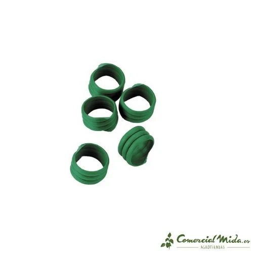 - Anilla de Espiral para Identificación de Aves. Verde, Ø 16 mm. Blister 20 uds. EAN 4018653721025.