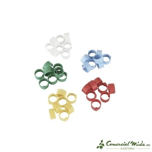 - Anilla de Plástico para Identificación de Aves. Colores Variados, Ø 16 mm. Envase 100 uds. EAN 4018653723524.