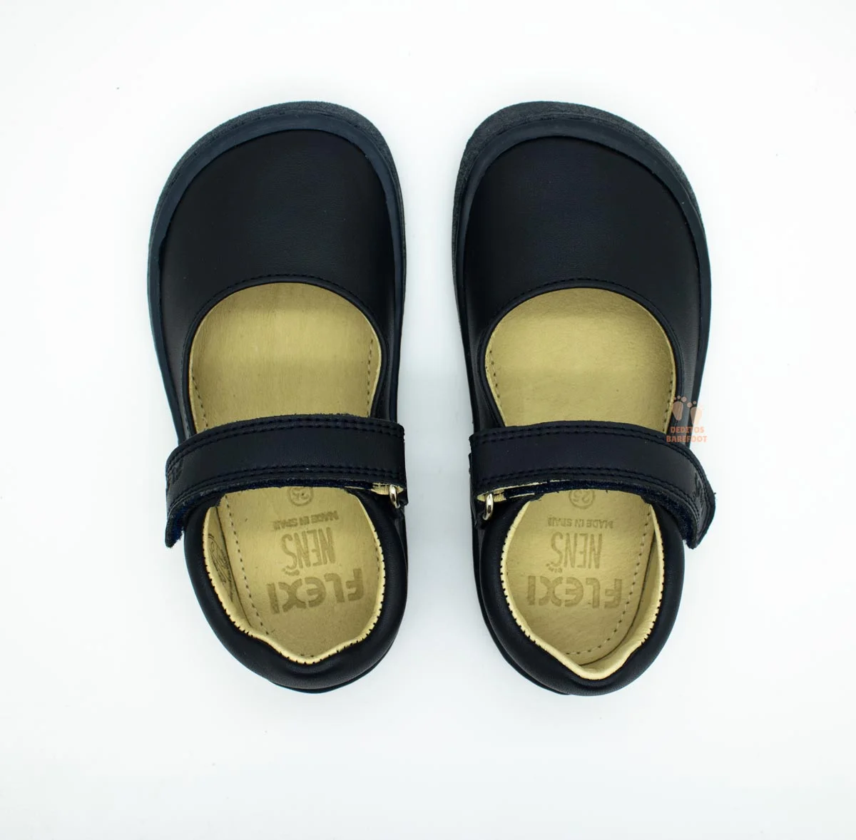 Para el cierre del zapato el fabricante ha usado UN CIERRE DE VELCRO largo y en el mismo color que el del zapato, este velcro está fabricado en piel, una de las ventajas de usar cierres con velcros es la facilidad de colocación del calzado respetuoso por parte de los niños/as. Además encontramos grabada la palabra flexinens al final del velcro.