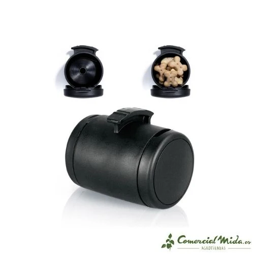 Recipiente dispensador de bolsitas o para almacenaje de snacks en los paseos. Diseñado para colocar en las correas New Comfort, New Classic, Desing y New Neon en cualquier talla.