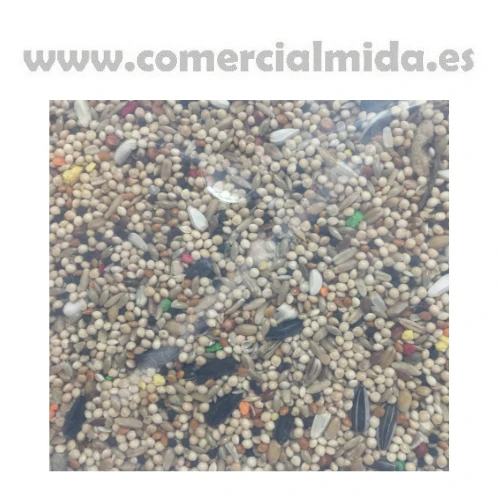 Pipa negra, pipa iregui, mijo rojo, mijo amarillo, alazor, trigo, linaza, alpiste, avena repelada, gránulos panificados y vitaminas A, E, B2, B6 y D3.