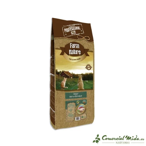 - Saco 18 Kg Farm Nature buey y verduras. EAN 8414606901333.