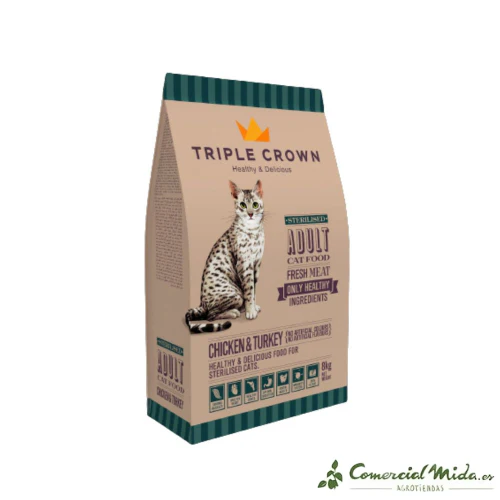 Descubre el Pienso Gatos Triple Crown Stirilized Cat 8Kg, un alimento completo para gatos esterilizados que ofrece una nutrición avanzada. Elaborado con los mejores ingredientes de la naturaleza, cada componente cumple una función específica para garantizar una nutrición integral y un sabor inigualable para tu felino. Asegúrate de brindarle a tu gato lo mejor con este alimento premium.