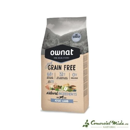 El pienso Grain Free Adult Lamb de Ownat se administrará siguiendo las cantidades indicadas por el fabricante.