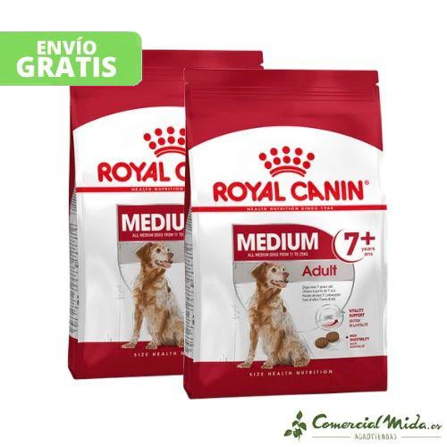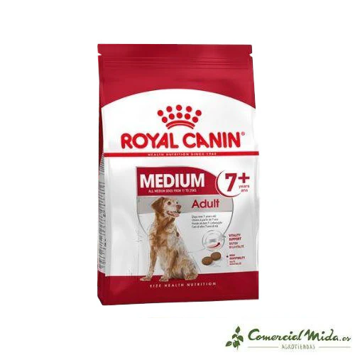 ROYAL CANIN MEDIUM ADULT 7 + es un alimento seco completo para perros maduros de razas medianas (de 11 a 25 kg) a partir de los 7 años. El pienso MEDIUM ADULT 7+ aporte un contenido de nutrientes adaptado para ayudar a mantener la vitalidad de los perros medianos que afrontan los primeros signos de la edad. Contiene un complejo de antioxidantes exclusivo que ayuda a neutralizar a los radicales libres.