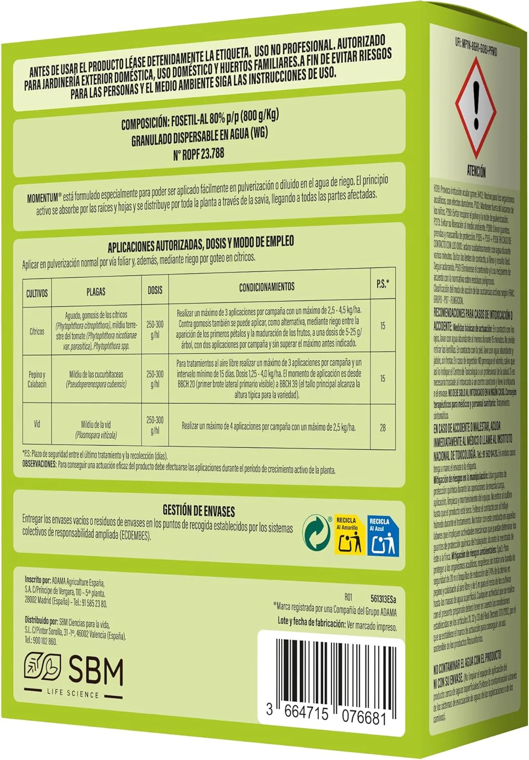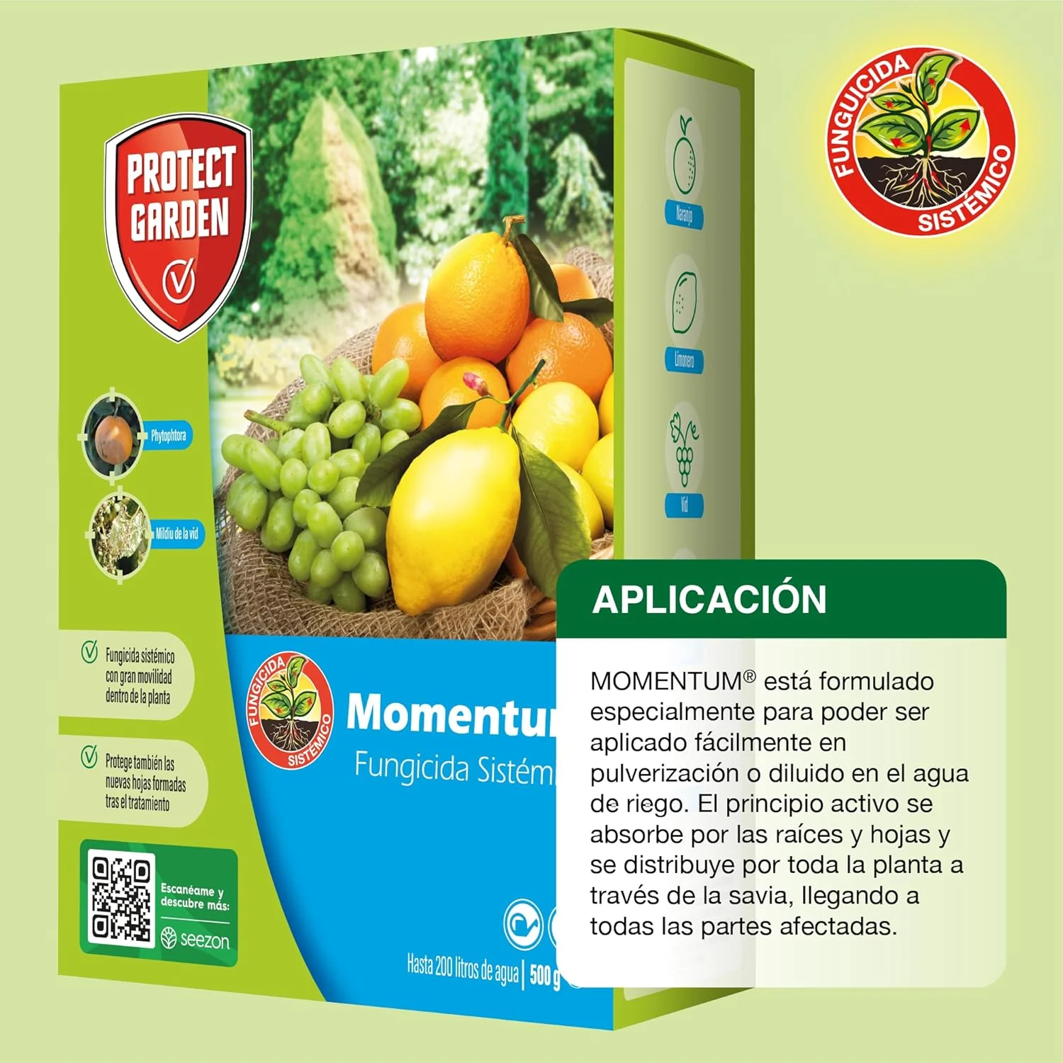 El Fungicida Sistémico Momentum (sucesor del antiguo Aliette WG) es una solución eficaz para combatir hongos en cítricos, vid, pepino, calabacín y césped. Su acción sistémica le permite ser absorbido por las raíces y distribuirse a través de la savia, protegiendo incluso las hojas nuevas que se formen después del tratamiento. Su formulación en gránulos dispersables en agua facilita su aplicación tanto en pulverización foliar como en riego por goteo, ofreciendo protección prolongada y efectiva.