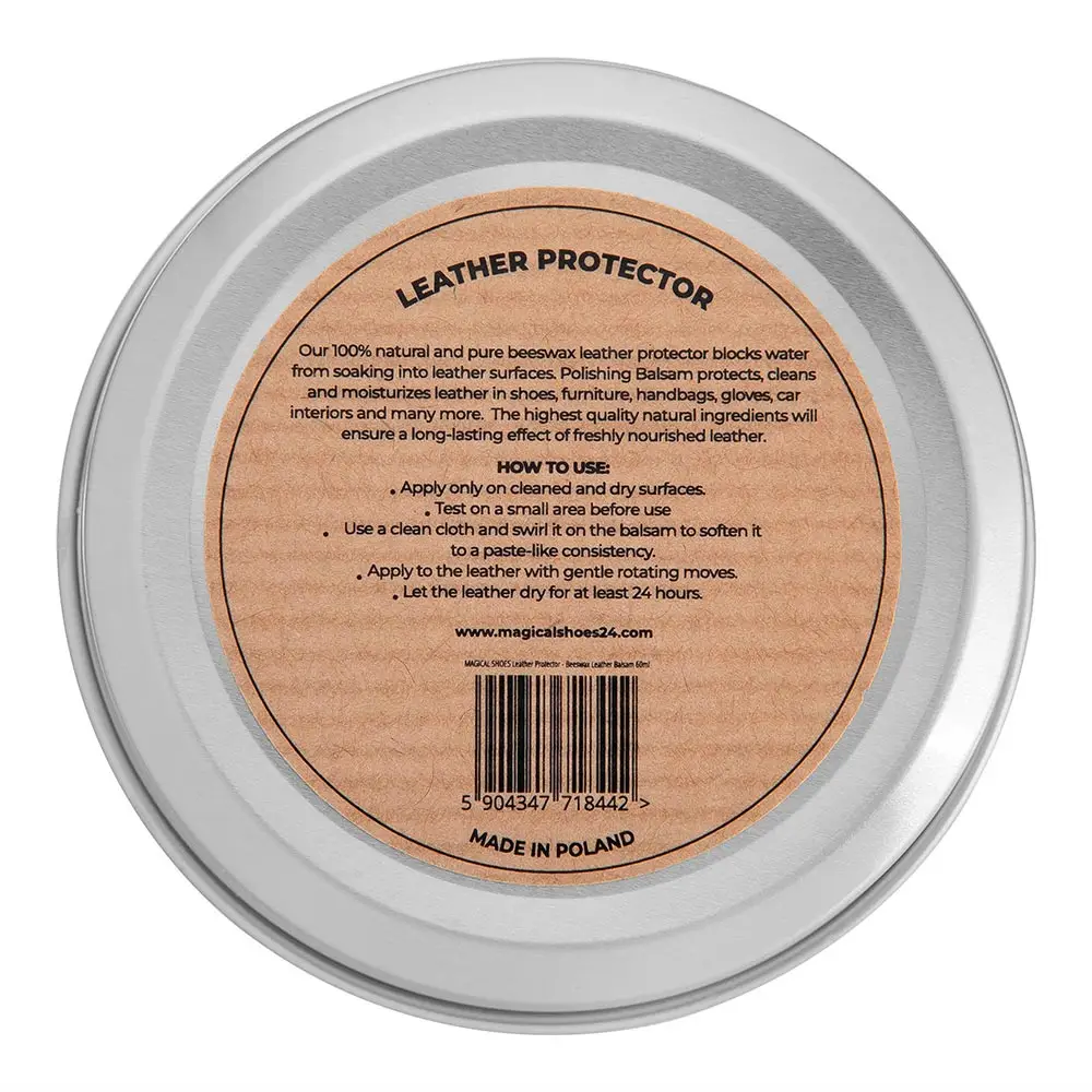 - Hidratación y restauración: El bálsamo penetra en las fibras del cuero, manteniéndolo suave y flexible, lo que ayuda a prevenir grietas y prolonga la vida útil de tus zapatos y accesorios.