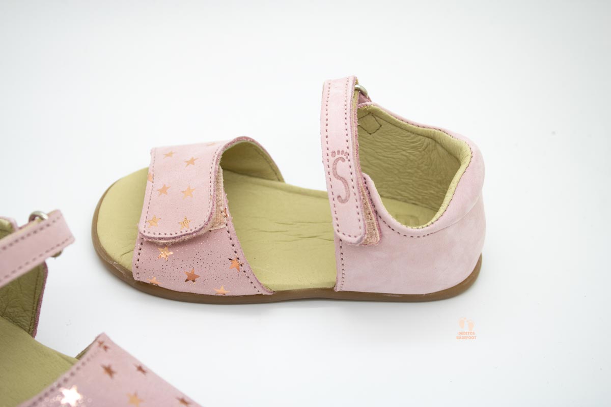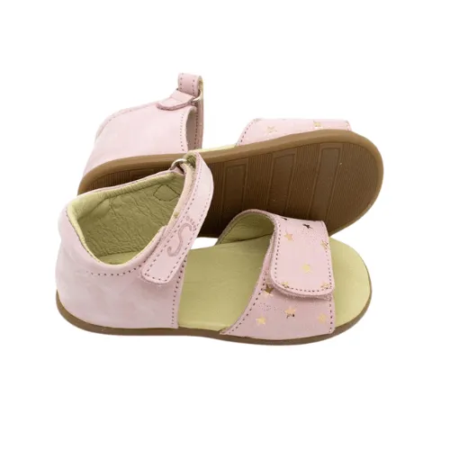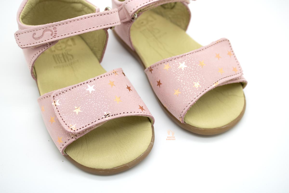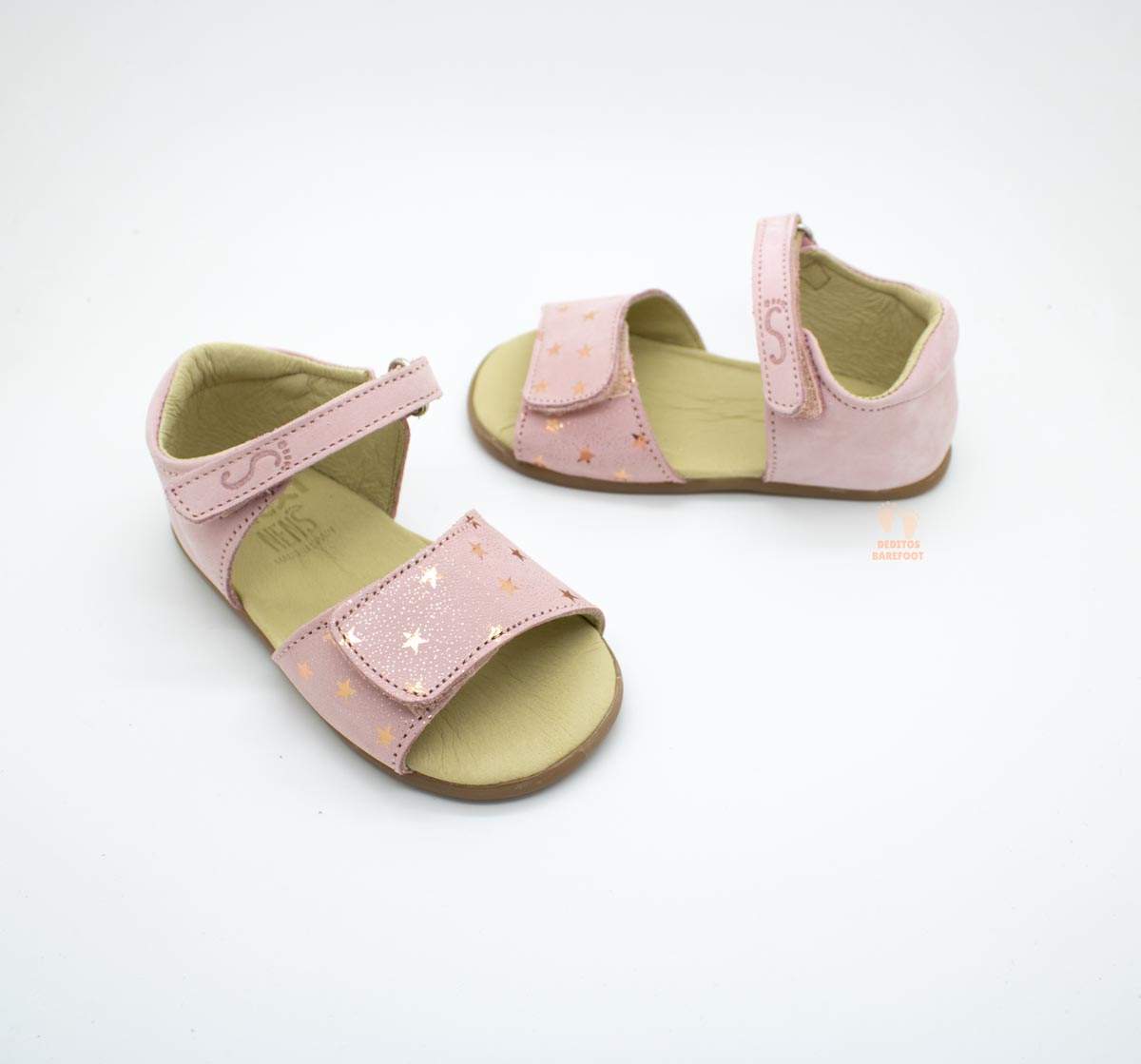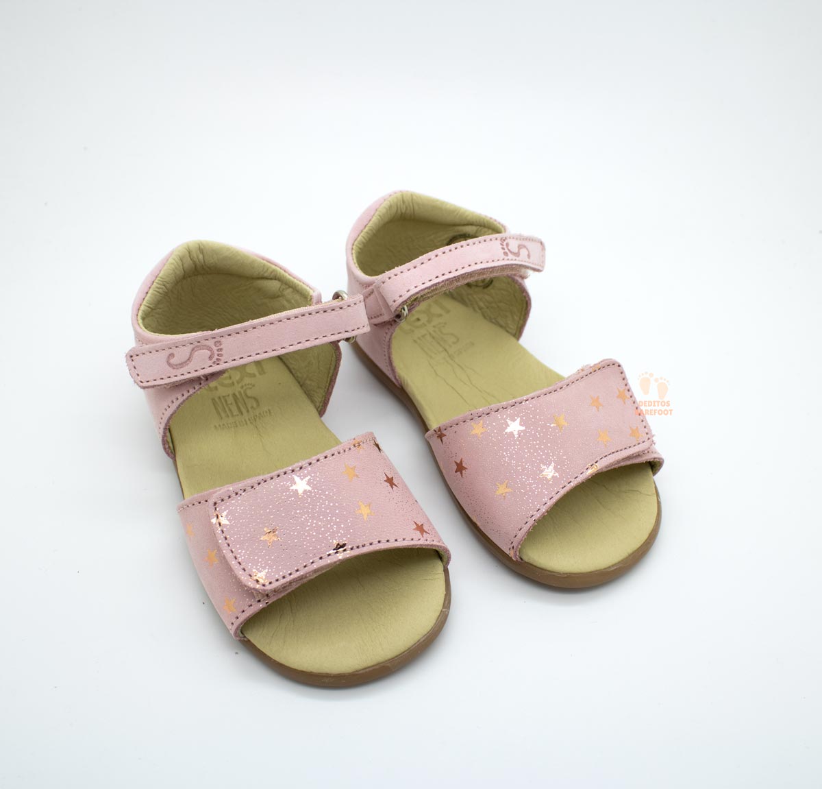 Presentamos este modelo de sandalias respetuosas infantiles del fabricante español Nens, concretamente estos zapatos respetuosos son el modelo Estelar Nobuck Rosa  (0094-H) y y el model Orion Canva (0094-H) las hemos traído en color ROSA y DORADO.Tallas desde la 20 a la 26