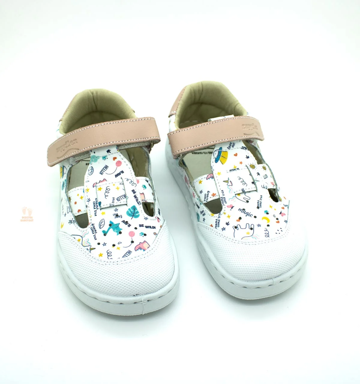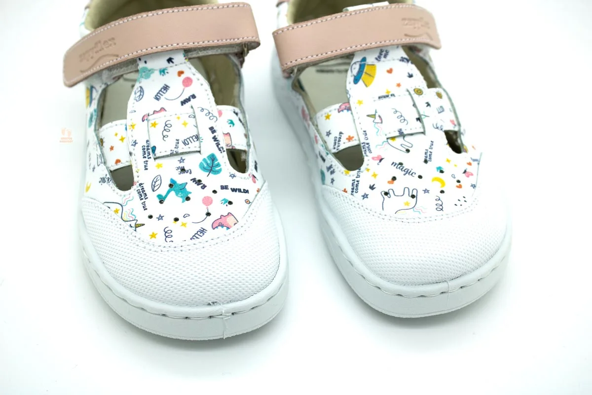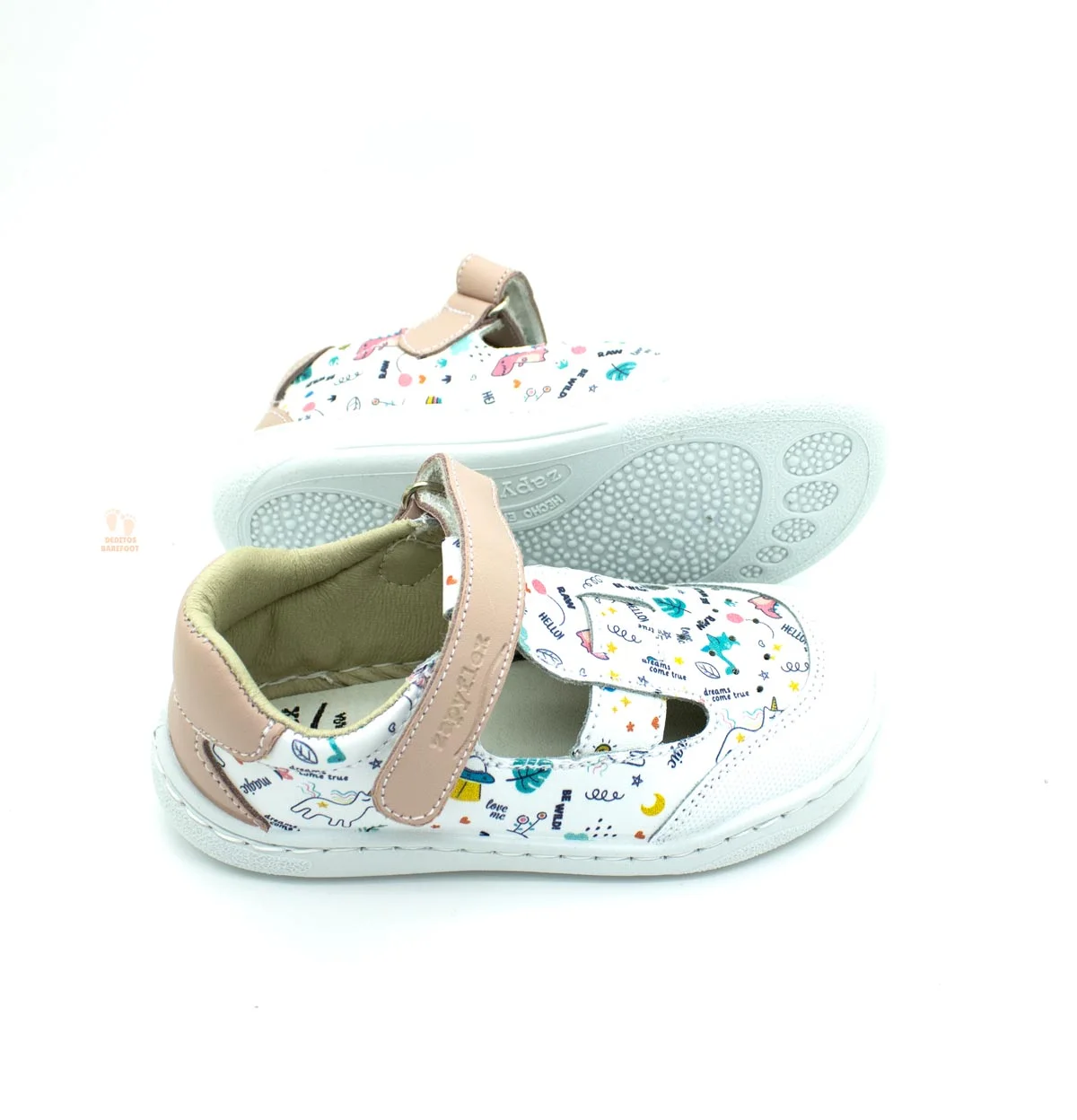 • ATLANTIC BLANCO (base en color blanco y estampado con dibujos de dinosaurios, ovnis, unicornios y velcro rosa nude). Ref: AG211477 – 1184 Blanco-Face