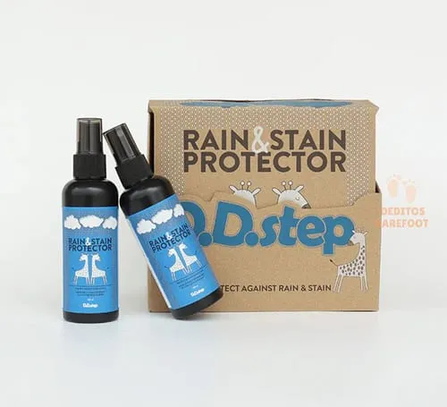 Fantástico spray impermeabilizante contra la lluvia y las manchas del fabricante europeo D.D.Step, con el que mantendrá sus zapatos barefoot limpios y secos.