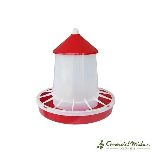 Tolva comedero de plástico para suministrar comida a las gallinas y aves de corral de forma cómoda y segura.