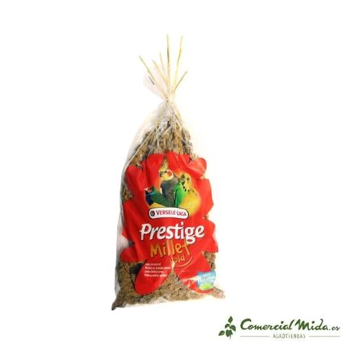 Las espigas de mijo amarillo Prestige Millet Gold de Versele Laga son un complemento nutritivo ideal para pájaros como periquitos, loros, agapornis… Es posible que tu mascota se aburra de darle siempre la misma comida, para lo cual estas espigas le darán un alimento diferente y perfecto como recompensa al enseñarle trucos.