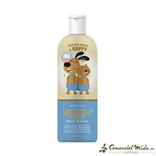 Multiva CoolSmile Plaque & Tartar es una solución oral que ayuda a reducir el depósito de la placa dental de los perros y los gatos y que estos tengan una buena salud oral. Está pensada para usar a diario y/o de forma continuada ya que no contiene colorantes, azúcares o alcohol y no daña al animal.