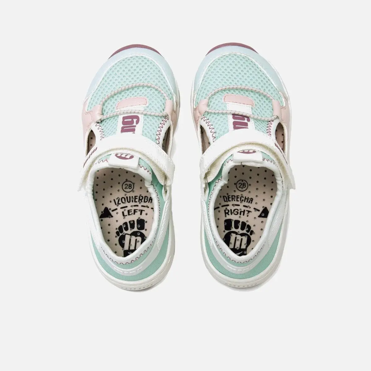 Gracias a sus materiales textil de alta calidad, estas zapatillas son ligeras y transpirables, ideales para el día a día. La suela es amplia, plana y flexible, permitiendo que los deditos tengan el espacio suficiente. La plantilla tiene un material sintético y es extraíble, lo que facilita comprobar si la talla del calzado es la correcta para tu hijo.