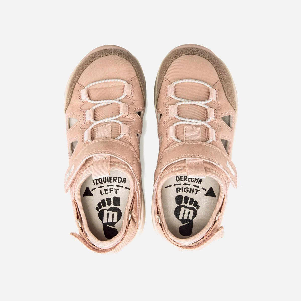 La suela es amplia para que los deditos tengan el espacio suficiente, flexible y ligera y además está fabricada con drop cero. En la zona delantera encontramos una puntera reforzada para evitar el desgaste por uso y sobre todo para proteger los dedos de posibles golpes.