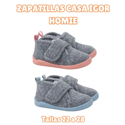El fabricante español IGOR presenta estas zapatillas casa respetuosas para la temporada otoño-invierno, en esta ocasión traemos el modelo HOMIE, unas zapatillas de casa barefoot que son el complemento perfecto para los momentos de relax en el hogar, disponibles entre las tallas 22 y 28 y las tenemos en varios colores: