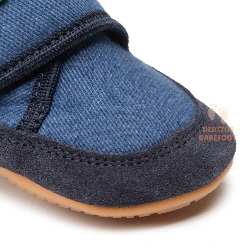 Este modelo de calzado barefoot tiene una plantilla de piel. La forma ancha de la parte delantera permite que los dedos se muevan sin trabas ni restricciones, así que el desarrollo del pie será completamente natural.