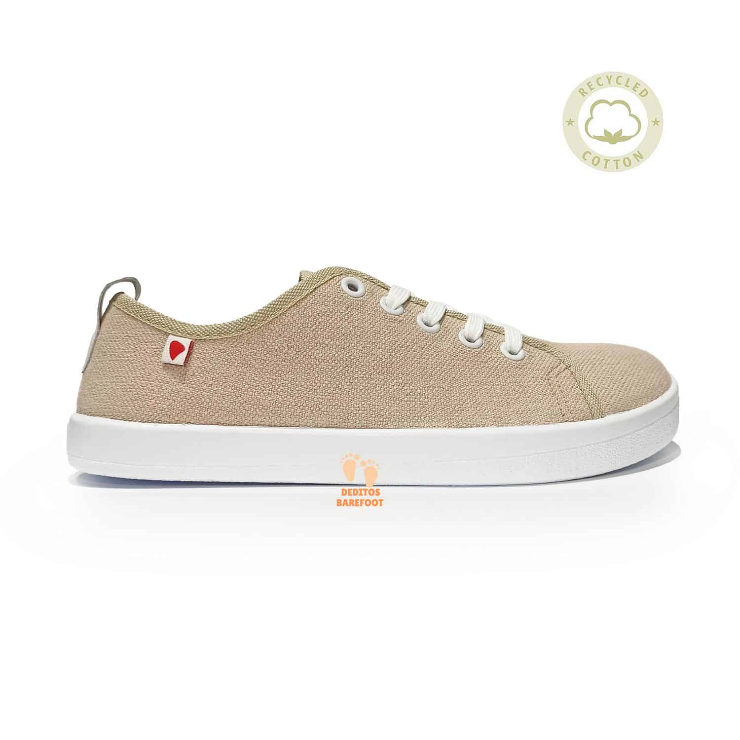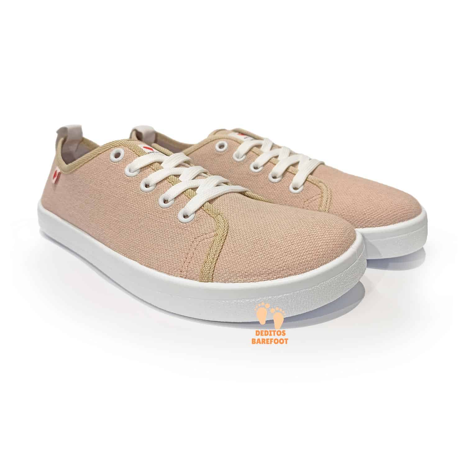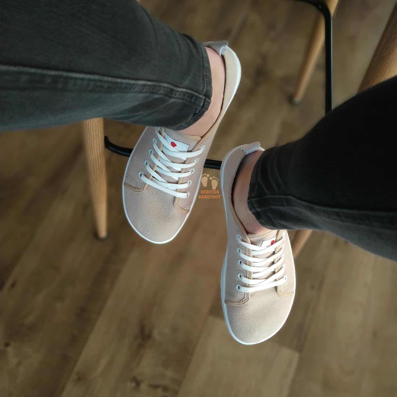 Las zapatillas barefoot para adultos del fabricante Anatomic en su modelo Starter Eco las tenemos disponibles en varios colores, en esta ocasión están fabricadas en textil (loca 100% algodón reciclado) en color ARENA (beige) y con suela en color blanco.