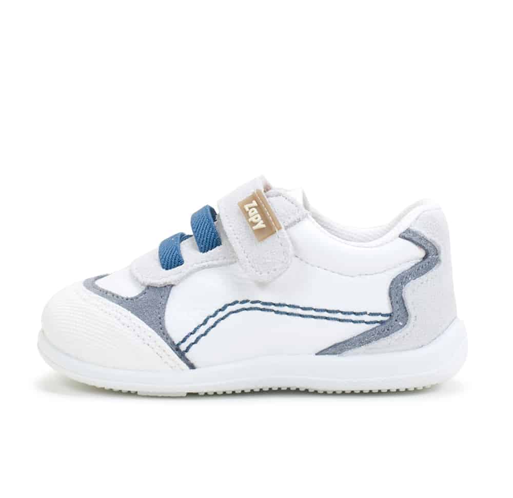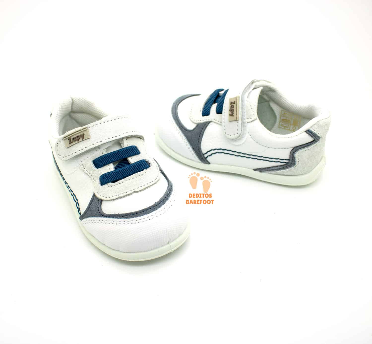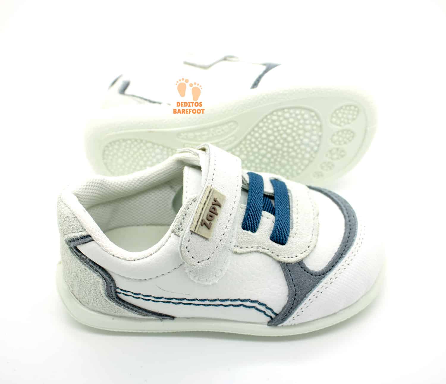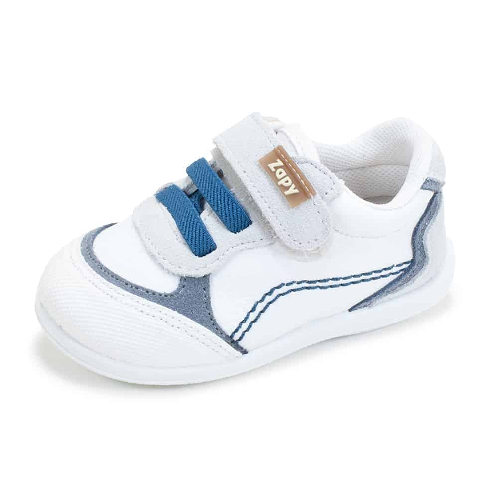 La reconocida marca española Zapy nos trae su exclusiva colección de zapatillas respetuosas deportivas para niños y niñas en esta temporada. Presentamos el modelo JOOGUIN BLANCO – JEANS, elaborado en cuero de alta calidad en una combinación de colores BLANCO y AZUL.