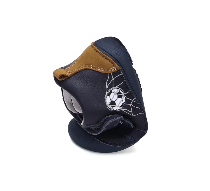 - FÚTBOL (base en azul marino casi negro con diseño de balón de fútbol y talonera en marrón). Ref: S063-42833M o LN
