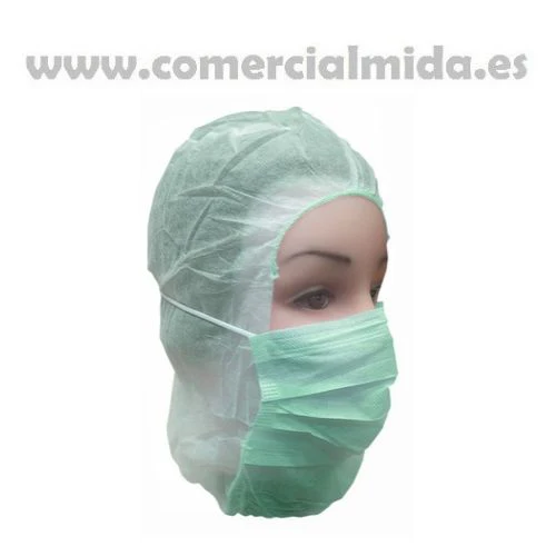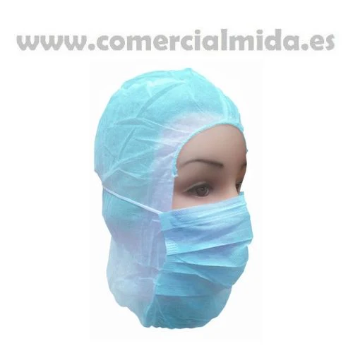 Capuz compuesto por gorro y mascarilla desechables.